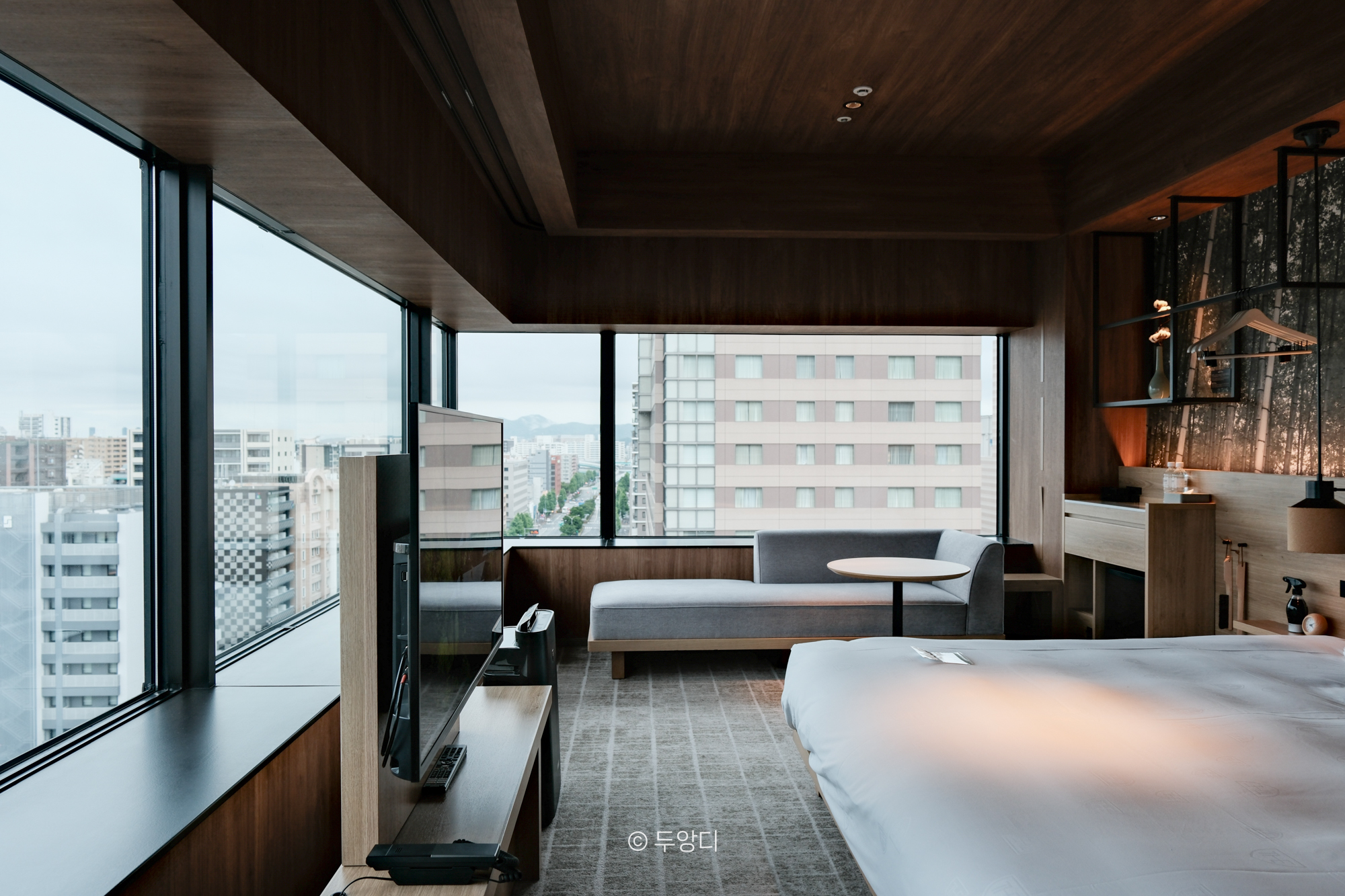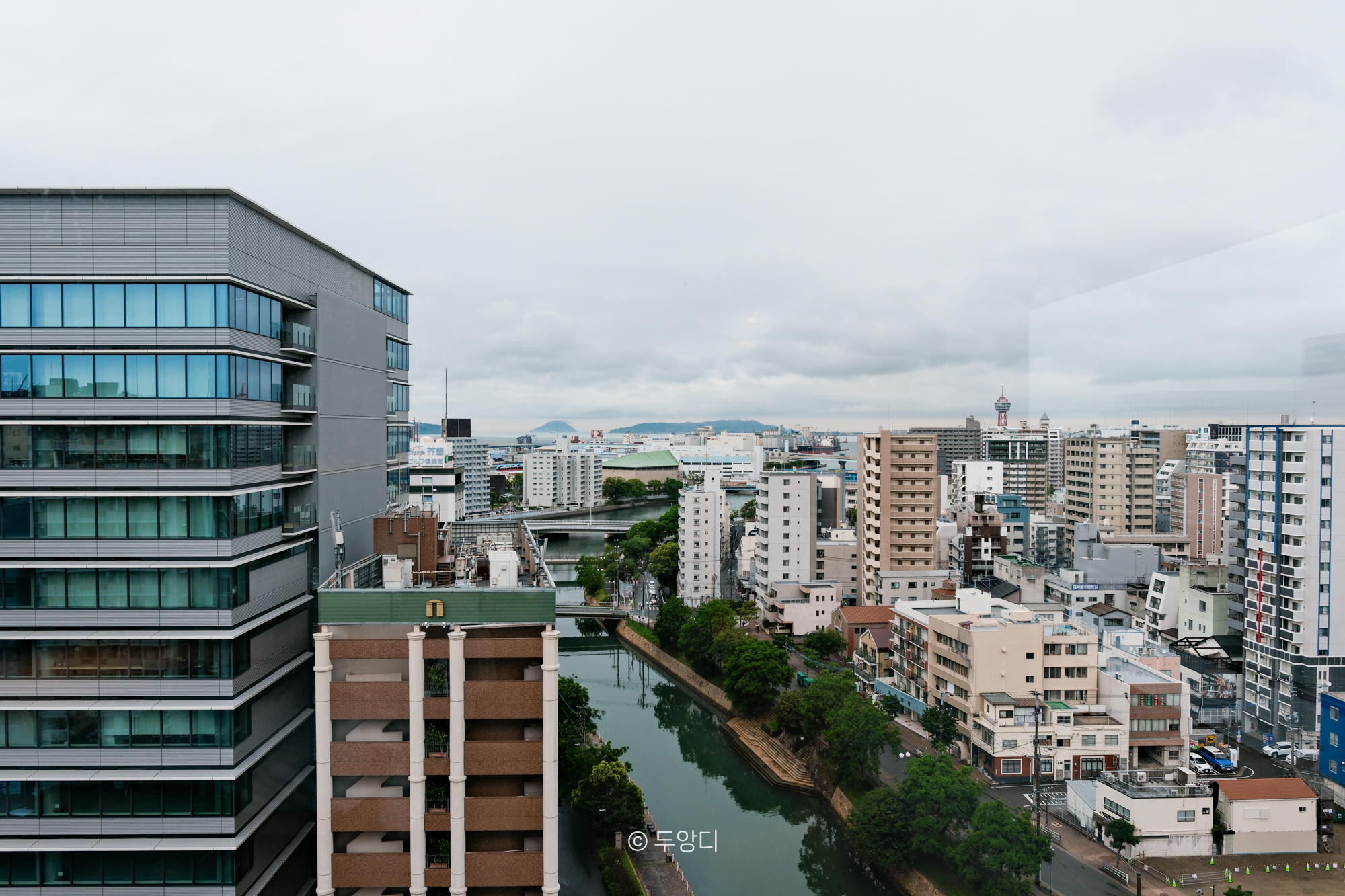 I booked the Corner King Room Riverside Sky Floor. Being a corner room, it featured gorgeous L-shaped floor-to-ceiling windows that perfectly framed the Fukuoka cityscape.