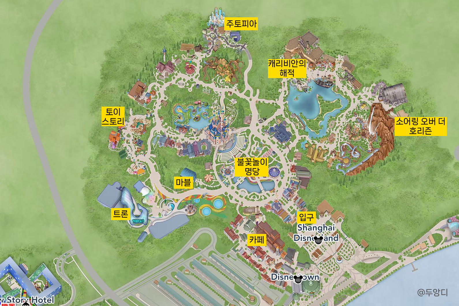 主要なアトラクションやエリアの位置関係をざっくりとまとめてみたので、スクリーンショットを撮って参考にしてみてくださいね ;)