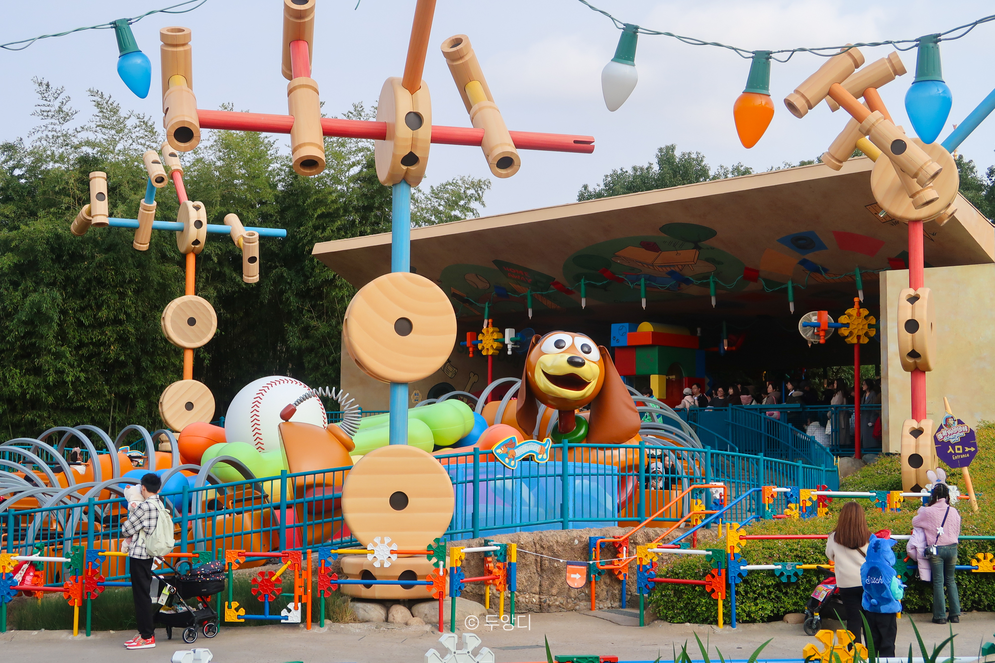 トイ・ストーリーランドも、おもちゃ箱をひっくり返したようなポップでカラフルな空間で童心に帰れます。ズートピアエリアに比べると比較的空いていて歩きやすかったです。