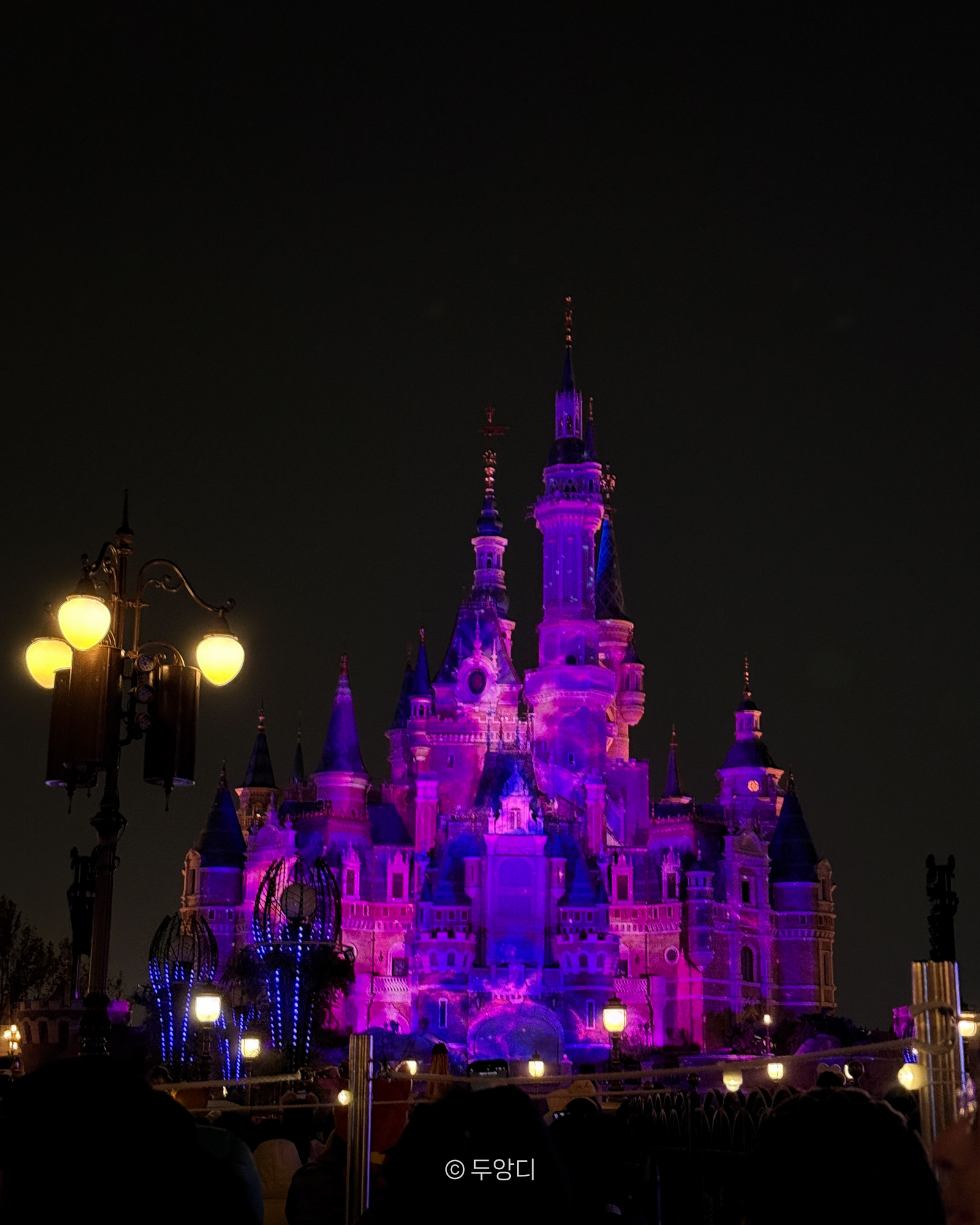 そして一日の締めくくりであるナイトショー(イルミネイト!ナイトタイム・セレブレーション)。開始1時間前から場所取りをしました。キャストさんに教えてもらったおすすめの鑑賞エリアで待機したおかげで、お城の正面から最高の写真を撮ることができました。